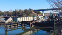 Two cranes sat in place to lift the Lewes Swing Bridge out of the Lewes- Rehoboth Canal on Wednesday afternoon. Once the bridge is lifted from the water it will be taken to American Legion Road.