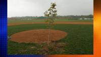 CENTREVILLE, Md. (AP) - Authorities say someone planted a tree and scratched "Earth Day 2017" in the dirt on the pitcher's mound of a Queen Anne's County High School baseball field in what may be a senior prank.