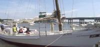The skipjack heritage museum in chance owns the city of Crisfield which is stored at Scott's Cove Marina. today Fitzgerald is not the only one working on a skipjack. Jackie Carew has to paint the hull of another skipjack and says the Marina provides no relief from the heat.