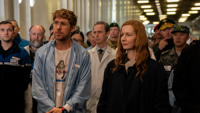 Lionel Boyce (The Bear) plays Carl, a security guard who is assigned to keep watch over Ryland when he's still on Earth working with Eva to analyze the Sun's virus. At one point, Ryland is stumped and he asks Carl for advice. Carl comes up with a theory that ends up being right. When Ryland has a question about something, Carl comes up with a solution. It's not very reassuring that Ryland can't get to these answers himself and that he needs Carl who isn't a scientist to come up with fixes. Also, at another point, once Ryland figures out how to replicate the virus, he meets other scientists, gathered from all over the world, who have already figured out how to use it to create fuel. These scientists feel like they are many steps ahead of him. So, when it gets to the end and we hear Eva making this argument that Ryland is the only person and the only scientist who can go on this mission, it's ridiculous and brings the film to a screeching halt.