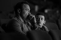 Raised by a father like Douglas can be traumatizing, which is really what this film is after. How Bruce made his music is kind of a throwaway here. We're led to believe that Bruce's childhood is a factor in the music he's making. Black-and-white flashbacks to his childhood reinforce this, but there isn't much connective tissue that drives home what Bruce feels about any of this. Yes, White's performance and the overall tone are meant to convey that Bruce was suffering from depression. If that wasn't clear, title cards at the end confirm what probably was a clinical diagnosis. It's a shame because we do get one scene of Bruce in therapy but he's given no dialogue. Bruce only gets one scene of dialogue with Douglas, which under-serves Graham as an actor, but it also under-serves both father-son characters. Yet, that scene, which involves Bruce sitting on Douglas' lap, was probably my favorite scene of the whole film.