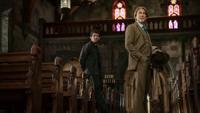 Like any Agatha Christie film, it's obvious that those six people will become the list of suspects once the murder happens. What strengthens the mystery usually comes in how much we get to know those various suspects. It's a different situation in the previous films because the first film had a list of suspects that were members of a family. In the second, the list of suspects was a group of people on a secluded island. Each of the last films had people who basically were trapped or confined to a single place, forced to interact. This film is different in that the potential suspects aren't trapped or confined to one place. They all meet up at the church, but it's not as if they're all unable to leave. They all live in Chimney Rock, but it seems like a regular sized town. Each of the six people have their own homes, so they're not forced to interact. They all can and do go their separate ways. We can't get to know them in a way that we could in the previous entries.