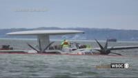 The above photos of the site were taken today by Captain Dan's Around the Island Tour. The top of the plane can be seen sticking out of what WBOC has been told is about 4 feet of water.