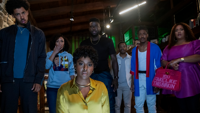 In various ways, the film explores Black identity through the prism of horror tropes. It's no surprise that it references Jordan Peele's Get Out (2017). Yet, Peele was more attacking externalized racism from so-called white liberals regarding the microaggressions they often impose. Oliver and Perkins are instead attacking internalized racism from Black folks who often size up themselves or one another. Both Get Out and this film could be classified as horror comedy, but Get Out leans more into the horror, whereas this one definitely leans more into the comedy, mainly of the verbal variety with whip-smart one-liners.