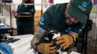 One of the rescued cats being tended to by Humane World for Animals. Photo courtesy of Meredith Lee.