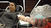 Having this blood drive on campus gives students the opportunity to donate when they are busy with classes. Keira Emshoff says this is the only way she can donate blood.