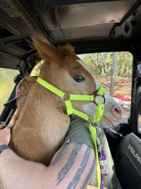 The foal was introduced to Esther Jane, another nursing mare who already had a foal. Luckily, Esther Jane allowed the newly orphaned foal to nurse.