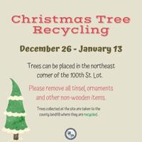 All tinsel, ornaments, and other non-wooden items should be removed prior to dropping off your tree. The collected trees will be taken to a county landfill where they will be recycled.
