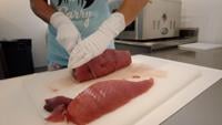 "And then here we go, now these are the pieces," said Pyle holding up two vacuum sealed tuna steaks.
