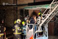 A fire broke out and several apartments were destroyed within the nine-story building in Dnipro, the emergency services said. Rescuers found the body of a woman on the fifth floor, they added, and two children were among the injured.