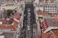 Tens of thousands of people also gathered over the weekend in dozens of cities in Bosnia, Croatia, Serbia, Slovenia and Montenegro, singing Beslic's songs together.