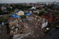 KYIV, Ukraine (AP) — The blast came without warning. A Russian missile ripped through a cluster of townhouses on the edge of Kyiv, tearing facades from nearby apartment blocks and scattering debris across the streets like lumps of confetti.