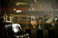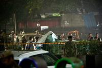 Images from the scene showed some shattered windowpanes and mangled pieces of vehicles while plumes of fire billowing from the burning cars.