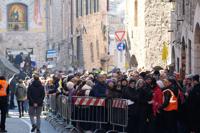 Nearly 400,000 people registered in advance to see the bone fragments, which are contained in a slim, bulletproof Plexiglas case in the lower Basilica of St. Francis in the hilltop Umbrian town the medieval friar made famous.