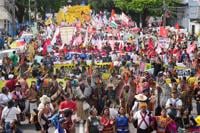 On the final night before an agreement was reached, a small group with banners walked inside the venue, protesting instances of violence and environmental destruction from the recent killing of a Guarani youth on his own territory to the proposed Prince Rupert Gas Transmission Project in Canada.
