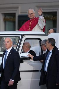 Leo greeted thousands of well-wishers who braved the cold to watch the American pope on his inaugural outing to the statue. They were treated to a popemobile romp through Rome’s historic center, which has been decked out for the start of the holiday shopping season.