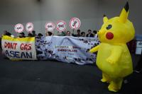 The protest centered on a pair of people wearing life-sized, inflatable Pikachu costumes who flanked a handful of activists. Protesters chanted “Only Pokemon, no fossil fuels” and “Sayonara fossil fuels.” The event included activists from across the Association of Southeast Asian Nations (ASEAN), which is home to multiple Japan-backed fossil fuel projects. One banner read: “Don’t gas ASEAN.”