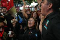 Supporters of the ruling party LIBRE, Liberty and Refoundation, cheer their Presidential candidate Rixi Moncada in Tegucigalpa, Honduras, Sunday, Dec. 7, 2025.