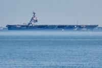 The carrier strike group, which includes squadrons of fighter jets and guided-missile destroyers, transited the Anegada Passage near the British Virgin Islands on Sunday morning, the Navy said.