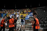 About 120 fans of the Israeli club traveled to Greece for that game and were held behind a police cordon before entering the venue.