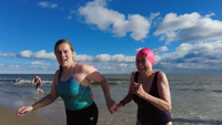 After making the plunge, Stobie and her daughter ran out of the ocean hand-in-hand in their swimsuits and swim caps. They were met by hot chocolate and soft, fluffy robes to warm up before starting the rest of their day.