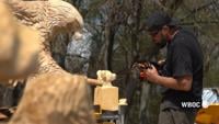 Josh Miller is keeping the art of woodworking alive in Felton. He cuts or carves blocks of wood using a chainsaw.