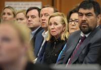 In a packed courtroom Wednesday, family members of the deceased girls wore buttons depicting their images as lawyers for Camp Mystic displayed pictures of trees planted in their memory and architectural renderings of plans to rebuild parts of the camp outside a 1,000-year flood zone.