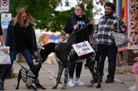 LANSING, Mich. (AP) — Dogs dressed up as everything from Elvis Presley to Scooby Doo’s Mystery Machine went trick-or-treating in Michigan’s capital Friday as part of the annual Howloween event organized by a local pet store.
