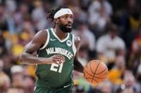 FILE - Milwaukee Bucks' Patrick Beverley dribbles during the first half of Game 4 of the first round NBA playoff basketball series against the Indiana Pacers, Sunday, April 28, 2024, in Indianapolis.