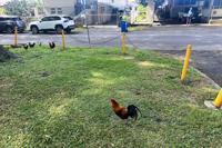 But the 3 a.m. rooster alarm isn't what bothers the retiree the most. It's spending most of the day shooing away wild chickens that dig holes in his yard, listening to constant squawking and feather-flapping, and scolding people who feed the feral birds at a park steps from his house.