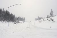 Snow covers an off-ramp along interstate 80 on Wednesday, Feb. 18, 2026 near Soda Springs, Calif.