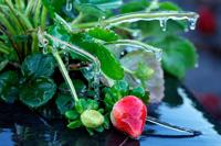 In Plant City, which bills itself as the winter strawberry capital of the world, growers used sprinklers to spray strawberry plants and ornamental plants with water that formed a protective ice as the overnight temperature went as low as 28 F (minus 2.2 C). The ice kept the plants' temperatures from going below freezing.