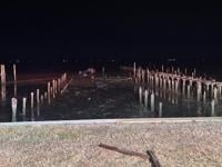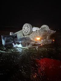The fire company says the car was passing another vehicle on Oak Orchard Road and did not stop at the end of the road. Fire officials say the car went through a private drive area, hit a bulkhead berm and several pilings before overturning and stopping on its roof in the bay just before midnight.