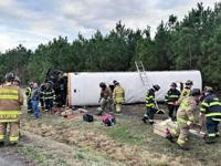 There were thirteen students from Sussex Montessori Charter School on the bus. Twelve students were taken to a local hospital for non-life-threatening injuries and were later released. One student was airlifted and admitted to an area hospital for serious injuries.