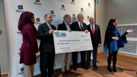 Perdue and Wicomico Library officials standing with the 'big check' for $1 million dollars on Wednesday.