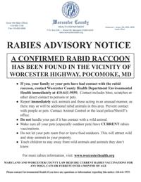If you, your family or your pets have had contact with the rabid raccoon, contact Worcester County Health Department Environmental Health immediately at 410-641-9559.