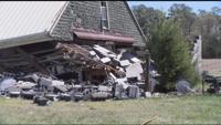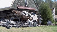 Buildings and homes like ones found along Fire Tower Road near Laurel had been damaged with roofing pulled off some homes.