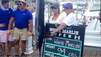 Cheryl McLeskey of the boat Backlash reeled in this first place white marlin, weighing in at 94 pounds to take the top price of $1.18 million in the 2015 White Marlin Open (Photo: WBOC)