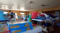 The Rec-Center in Ewell, Smith Island is lined wall to wall with tables, and each of those tables is completely covered with supplies that ranges from water bottles and chips to Avenger's coloring books and crayons.