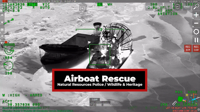 The DNR airboat, or fan boat, is designed to operate in shallow, marshy areas or areas in which gliding over ice is necessary. Because of the windy conditions, it was determined that a boat rescue would be safer than an attempt to hoist the stranded hunters out by helicopter. The airboat team, with assistance from the NRP helicopter spotlight, was able to rescue all six stranded hunters in two separate trips. The airboat rescue can be seen in this video. The hunters were taken to shore and evaluated by EMS personnel then transported back to their cars.