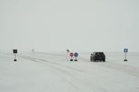 The road is essentially a marked corridor on the frozen sea where specialists have determined the ice is thick enough to sustain the weight of driving cars.