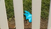 Strips of blue and white vinyl are scattered outside the splash pad gate, and paint covers some of the damage. Frequent splash pad user Austin Quathamer expressed his disappointment.