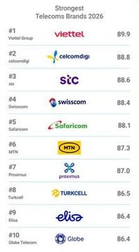 HANOI, Vietnam, March 19, 2026 /PRNewswire/ -- Viettel Group has been ranked as the world's strongest telecom brand, achieving a Brand Strength Index (BSI) score of 89.9/100 and an AAA+ rating, the highest level awarded by Brand Finance.