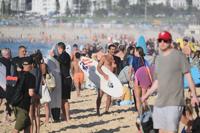FILE - Surfers and swimmers leave the water after a tribute following last Sunday's shooting at Bondi Beach, in Sydney, Friday, Dec. 19, 2025. (AP Photo/Steve Markham,File)