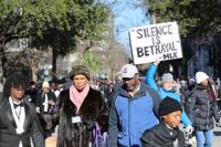 FILE - A crowd marches across the Lefty O'Doul Bridge during the MLK Day March in San Francisco on Monday, Jan. 20, 2025. (Dan Hernandez/San Francisco Chronicle via AP)/San Francisco Chronicle via AP, File)