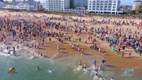 People ran into the Atlantic Ocean to kick off 2026 in the 21st annual Fenwick Freeze. Dozens of people jumped in-place to await the whistle that kicked off the event.