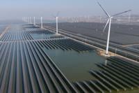FILE - Wind turbines operate along a solar farm near Weifang in eastern China's Shandong province on March 22, 2024. (AP Photo/Ng Han Guan, File)