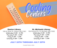 Talbot County Emergency Services have announced the opening of cooling centers for those in need of shelter from this week’s heat.