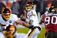 FILE - Washington Football Team quarterback Taylor Heinicke (4) looks to pass against the Tampa Bay Buccaneers during the second half of an NFL wild-card playoff football game, Jan. 9, 2021, in Landover, Md. (AP Photo/Julio Cortez, File)