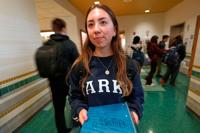 Josephine Timperman, a student at Miami University, poses for a portrait Friday, April 24, 2026, in Oxford, Ohio. (AP Photo/Jeff Dean)